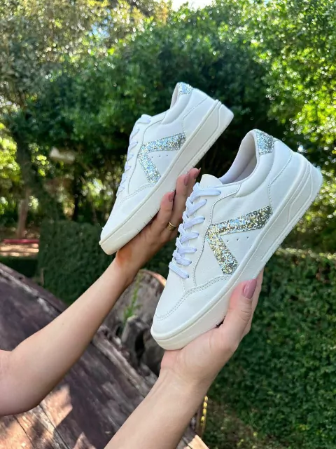 Com um design moderno e detalhes deslumbrantes, este tênis é o acessório perfeito para compor looks que vão desde eventos casuais até ocasiões mais elegantes.